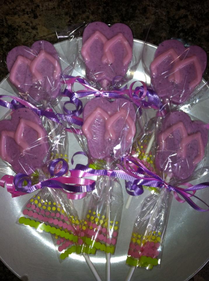 Pink Sandals are a fun way to show off your spring or summer event. Pink Sandals comes individually wrapped and tied with matching ribbon. Each favor comes on a stick ready to serve and eat.