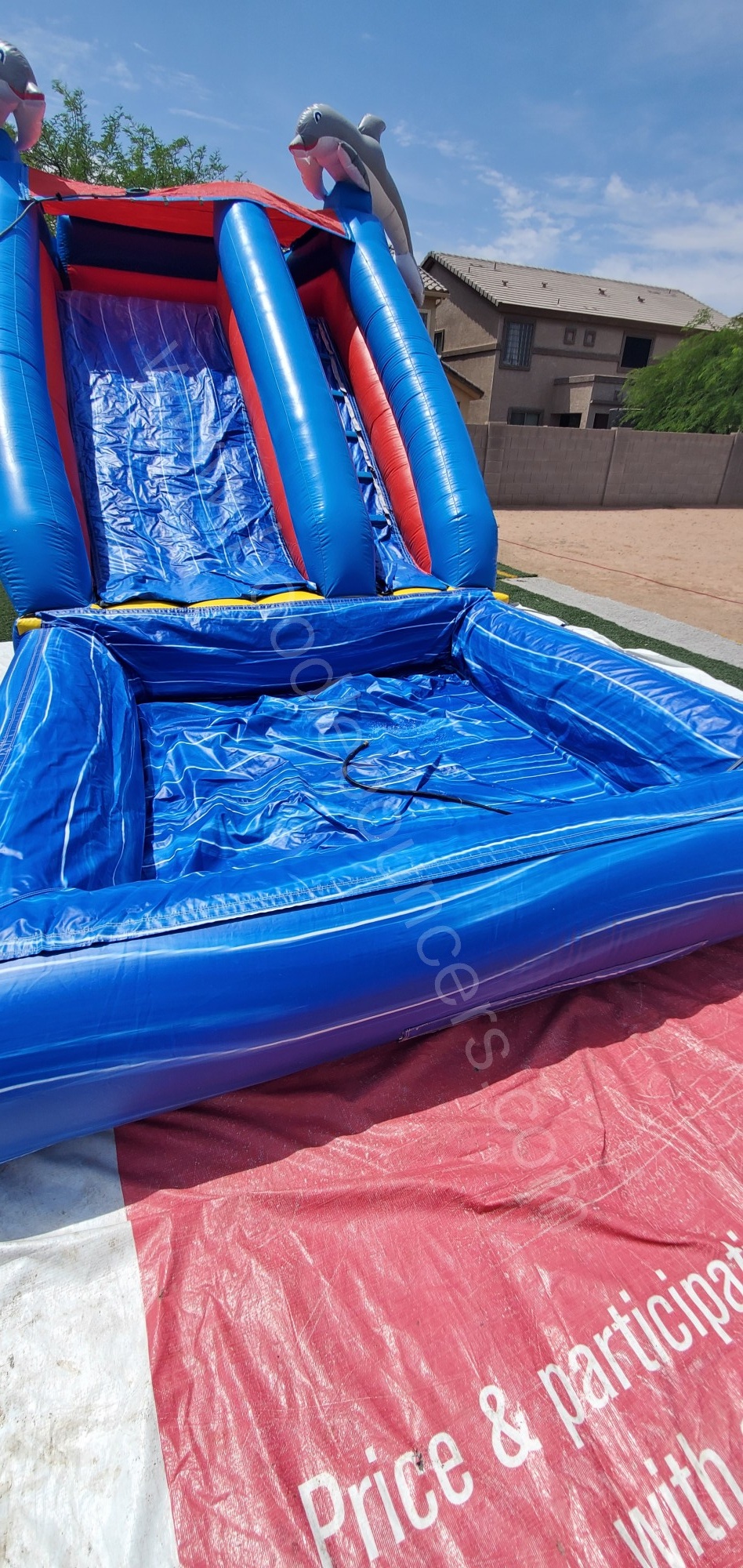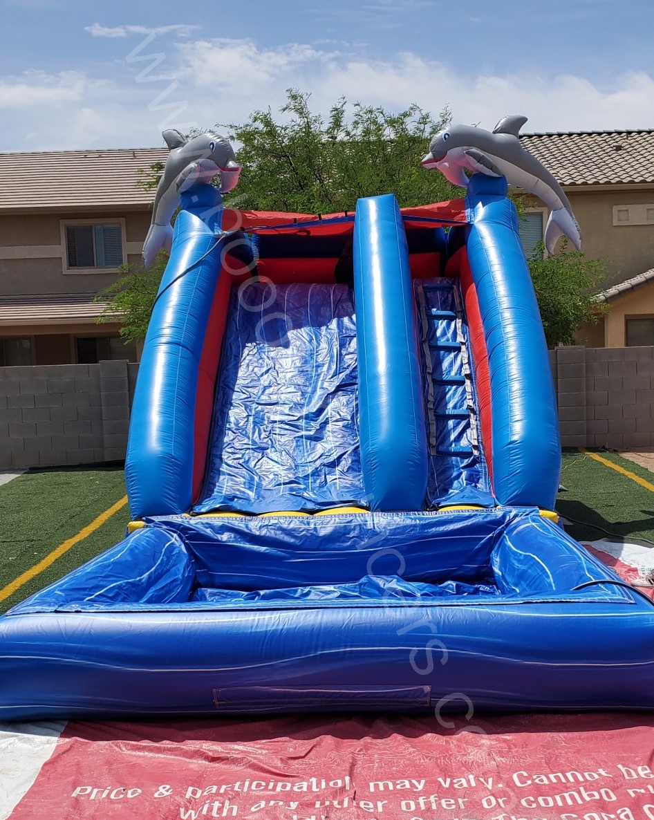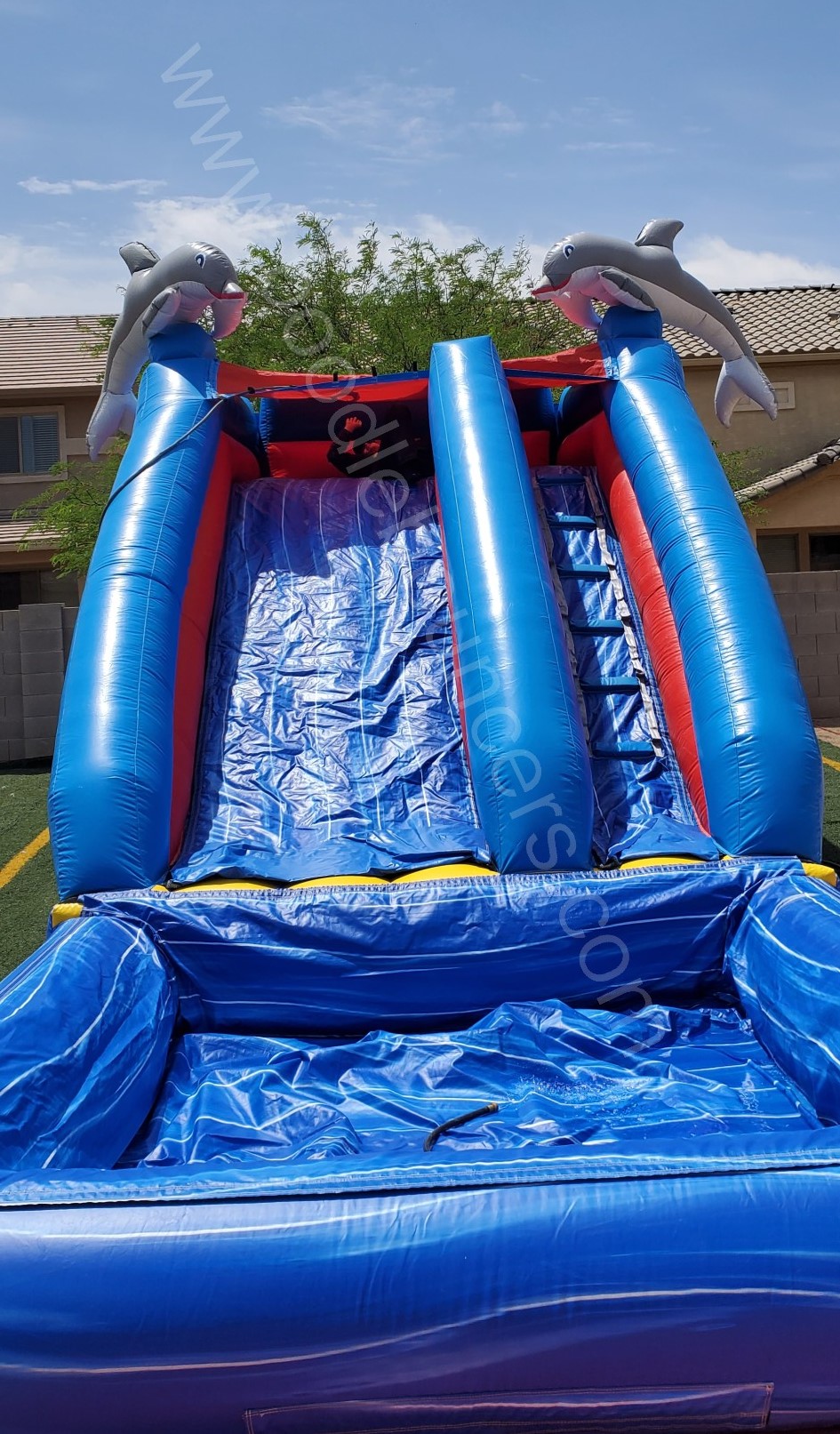 If you are looking for a slide but nothing very tall, our 14 foot slide will be perfect. It's great for all your guests. Climb up the ladder and down the slide into a nice cool pool of water.