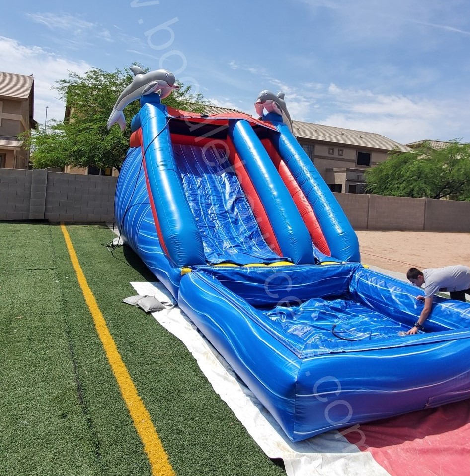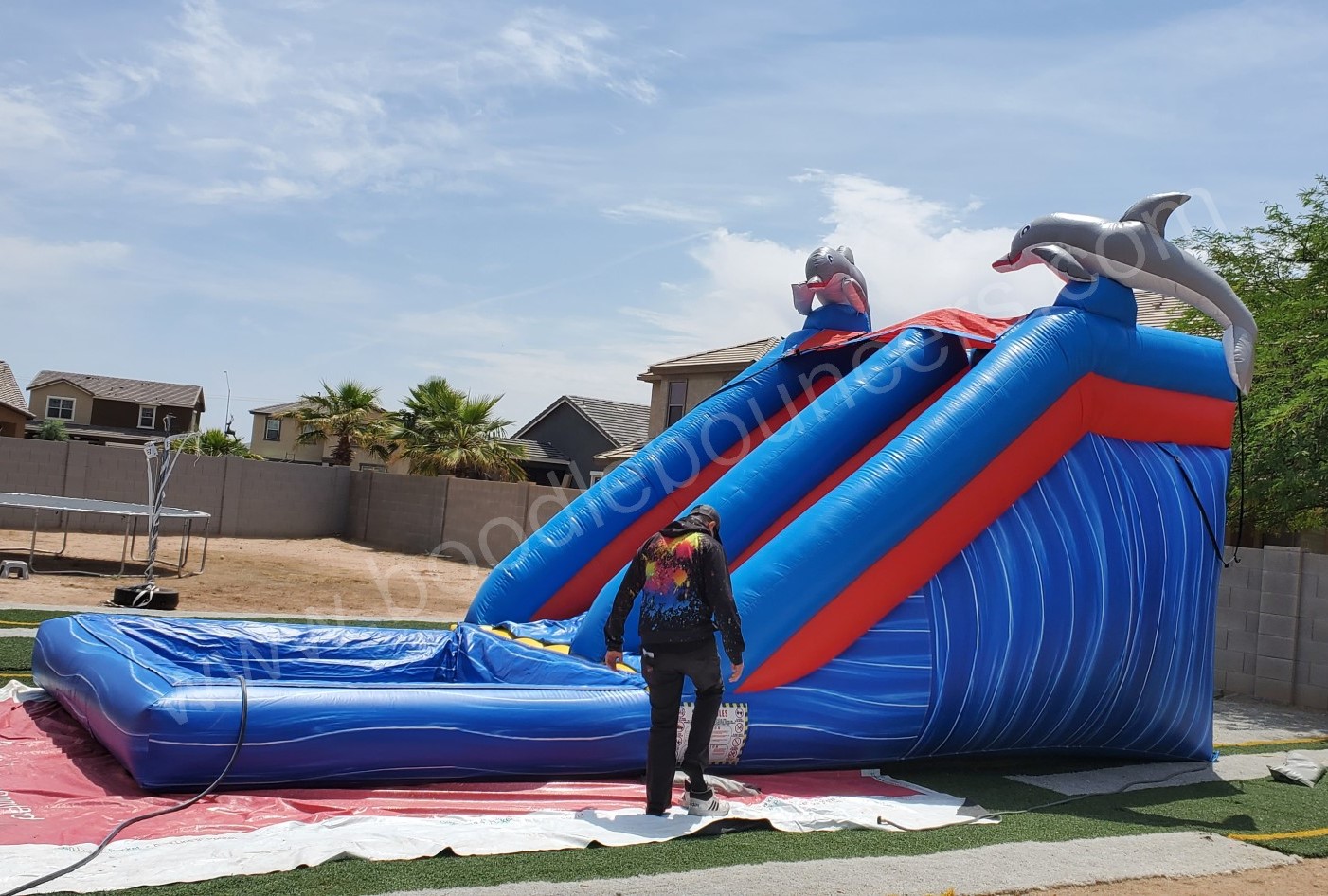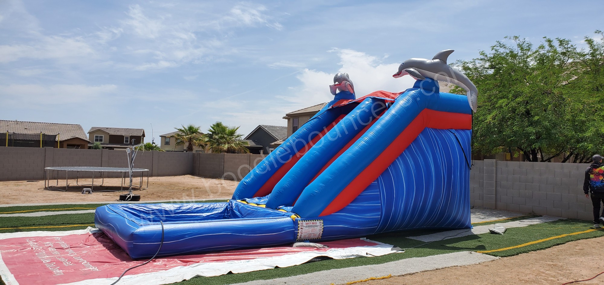 If you are looking for a slide but nothing very tall, our 14 foot slide will be perfect. It's great for all your guests. Climb up the ladder and down the slide into a nice cool pool of water.