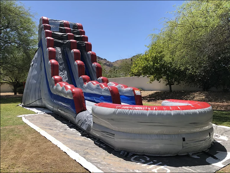 Enjoy hours of fun with this 22 Foot Titanium Slide. It's great for all your guests. Climb up the ladder and down the slide.