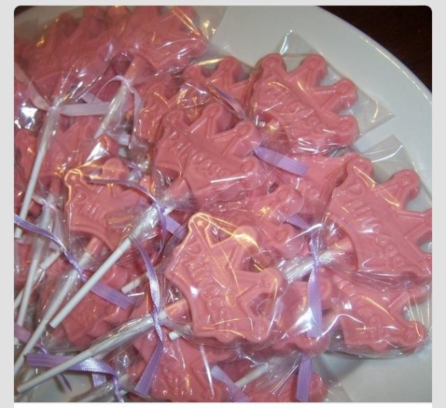 Every princess needs her crown. Crown each princess with this Princess Crown chocolate lollipop favor. The Princess Crown favor shows detail of a crown with the word "Princess". Princes Crown comes individually wrapped and tied with matching ribbon. Each favor comes on a stick ready to serve and eat.